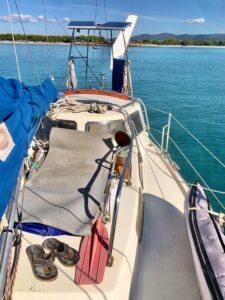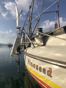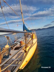 Buildt 1964 in Malmö , Sweden. Named Pinoseed in the 21 century. Fully equipt to cross an ocean. Swedish flag.